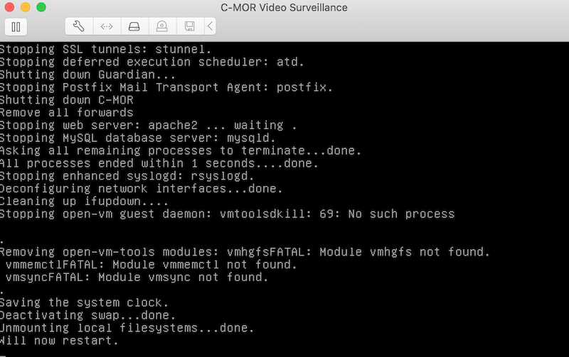 Also open the Remote Console to review the start of C-MOR. C-MOR restarts once automatically again for the initial startup:
