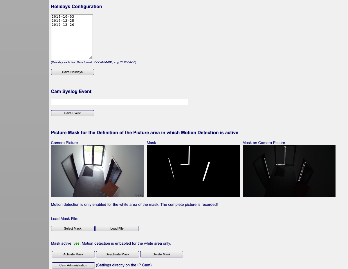 The following screenshots gallery show the configuration pages of the C-MOR Administrator Web Interface. Please use the online demo to test live view, motion detection or time-lapse recordings: